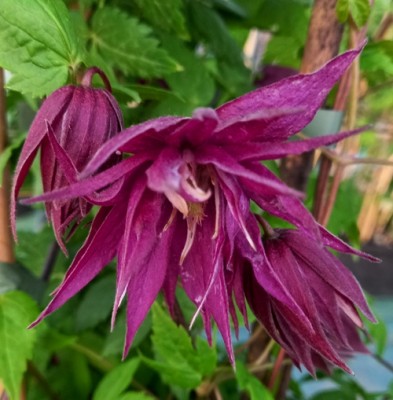 Квітки середні, але в порівнянні з іншими сортами княжиків, більші, махрові, напівмахрові. Чашолистки та стамінодії яскраво пурпурні, до осені з фіолетовим відтінком. Чашолистики та стамінодії однаковового окрасу та довжини.